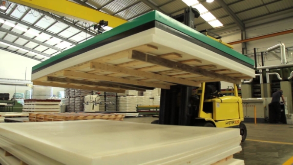 PAVE TOUT POLYURETHANE MOULE SUR TOLE PERFOREE AVEC UN LAMAGE ET PERCAGE CENTRAL